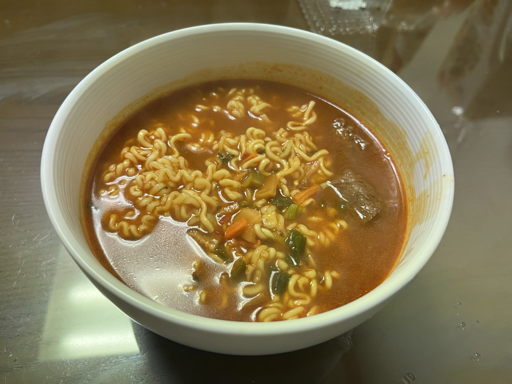 거기에 열라면 한 개를 끓여 먹었습니다.
