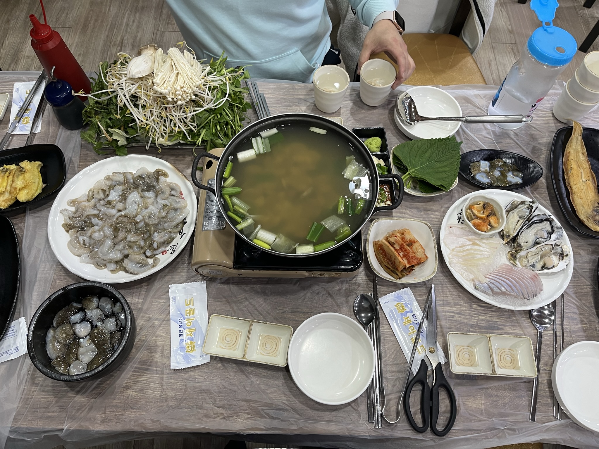 배고플 땐 가족과 쭈꾸미 샤브도 먹었습니다.