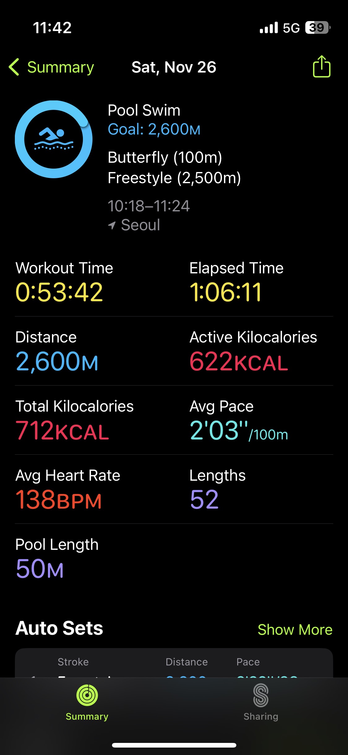 애플 워치로 측정한 운동 내역입니다.