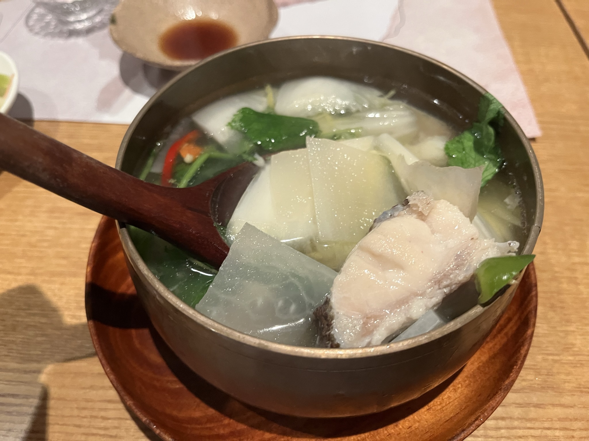 도미머리맑은탕과 꼬막 비빔밥입니다.