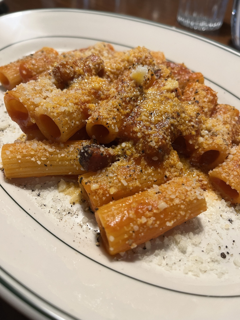 면은 리가토니였고 빼꼬리노로마노(양젖치즈) 치즈 향이 확 올라와 너무 좋았습니다.