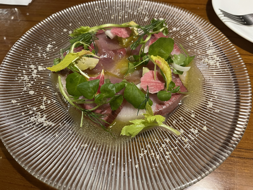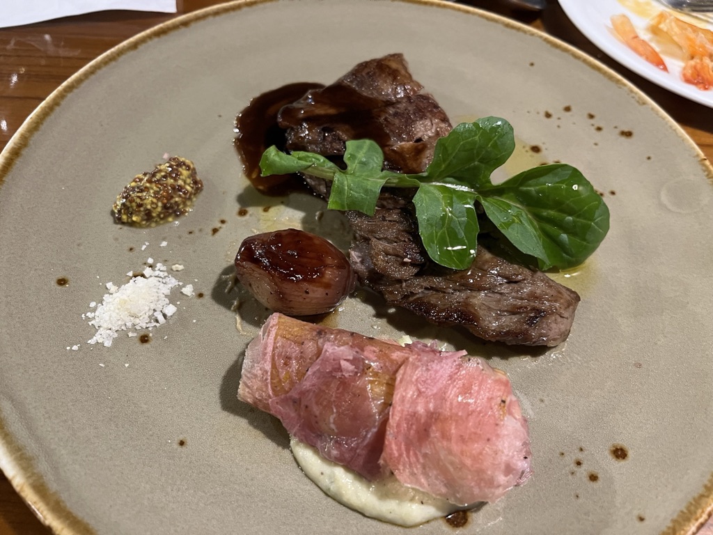 저희는 카르파쵸, 비스퀴파스타, 이베리코 플루마 스테이크였습니다.