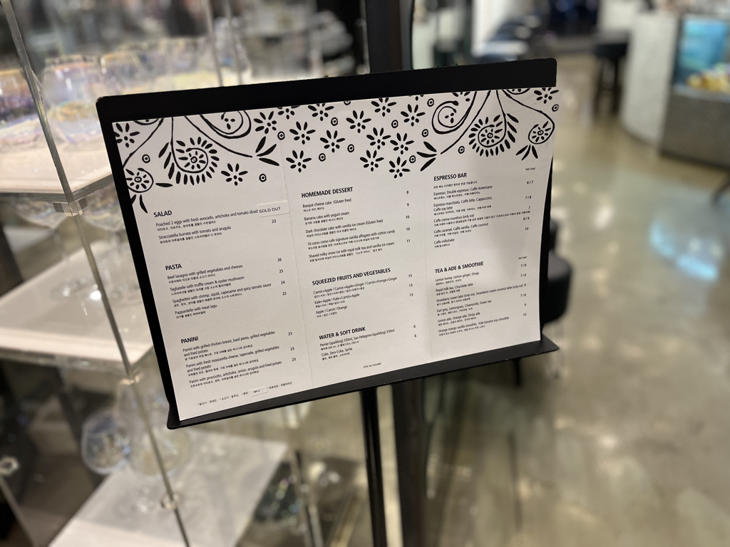 입장할 때 카페와 식사 둘 중에 어떤 걸 즐기시는지 점원분께서 물어보시는데요.