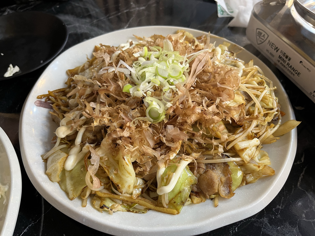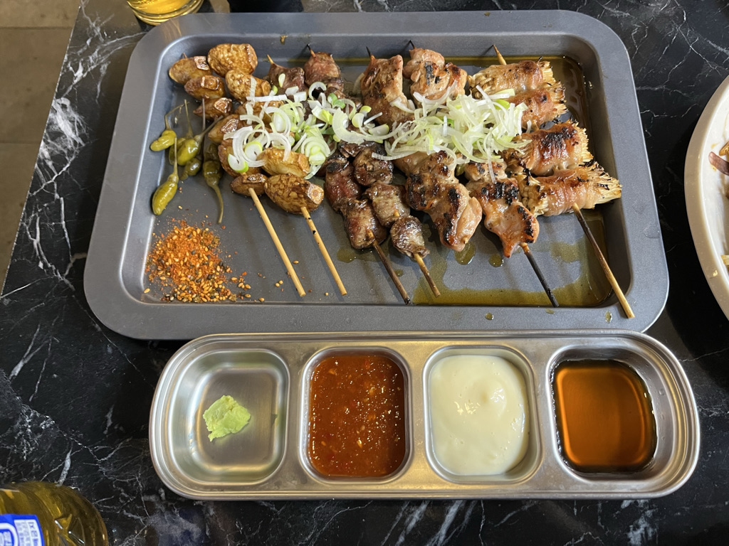 저희는 야끼소바와 꼬치구이 7종으로 주문했습니다.