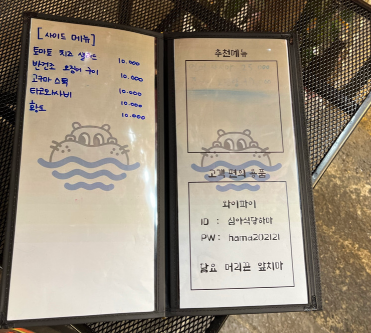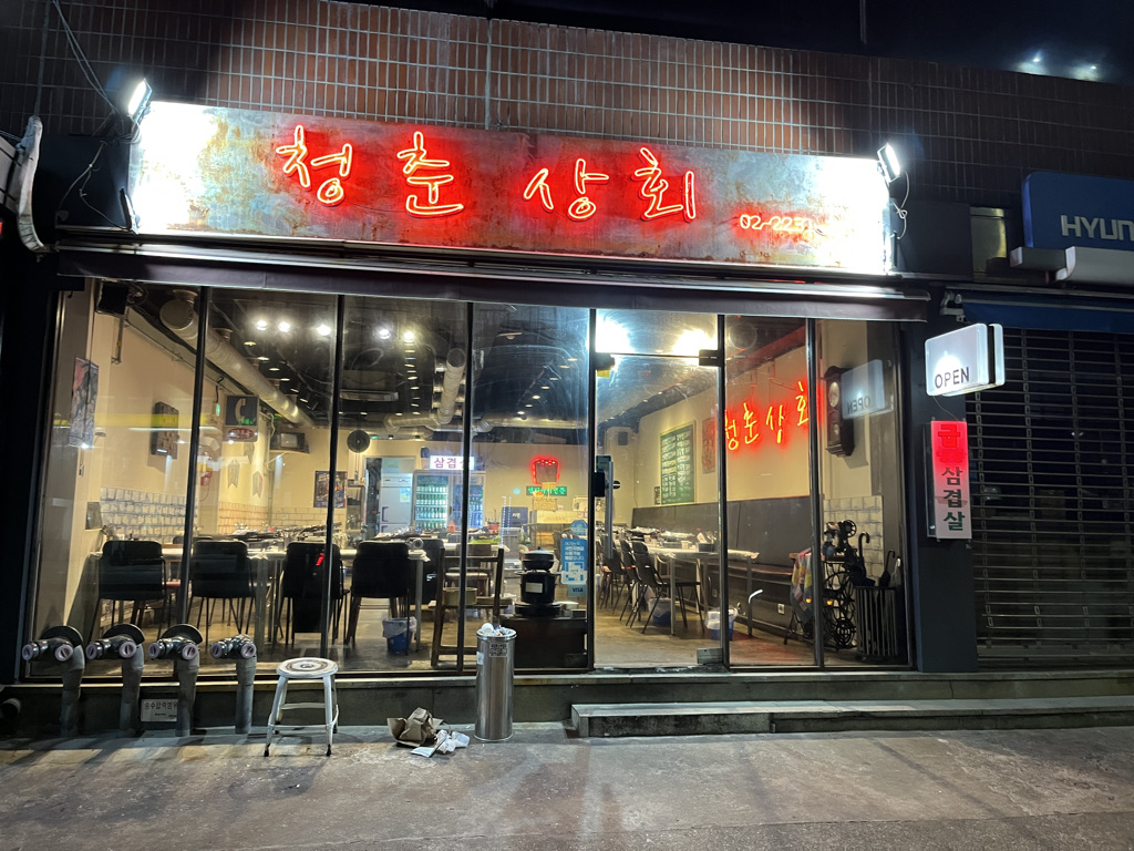 청춘상회에서 냉삼을 먹었고 2차로 신당 중앙시장의 심야식당 하마를 다녀왔습니다.
