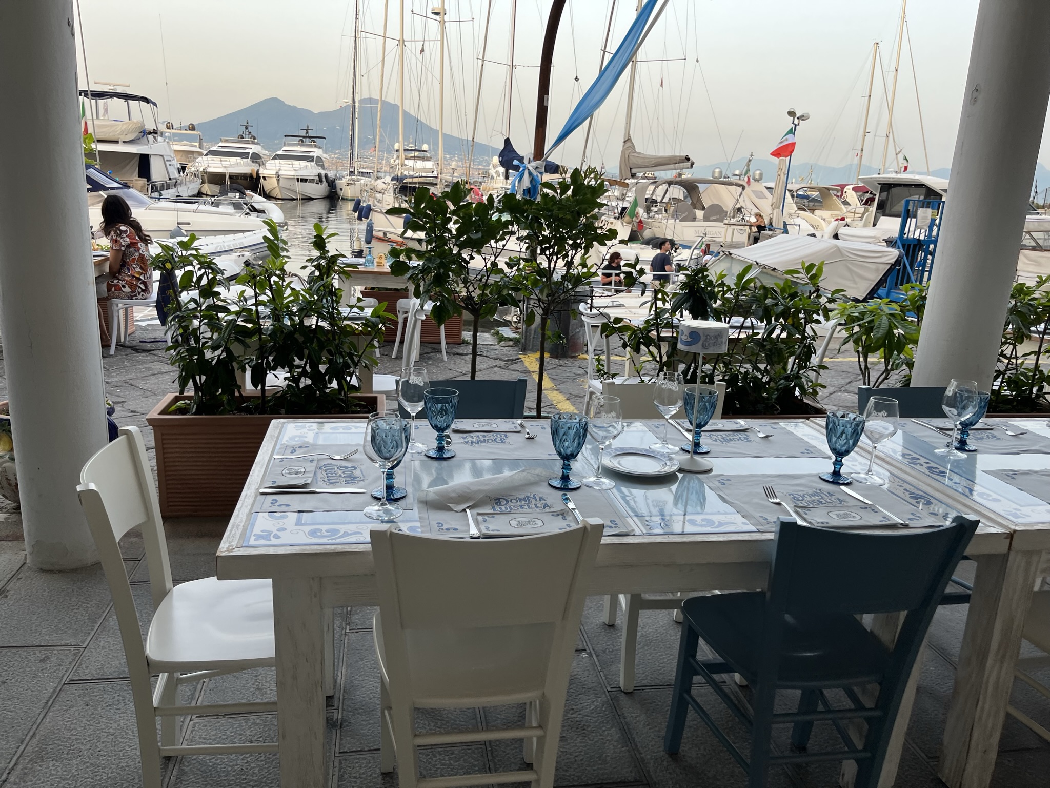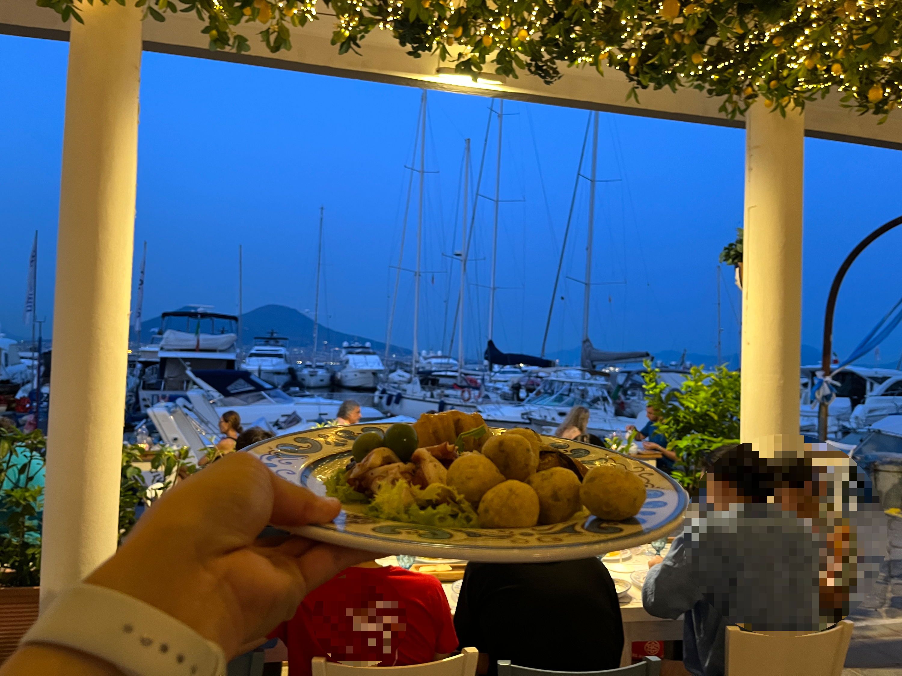 베수비오 산이 보이며 요트 선착장 바로 옆입니다.