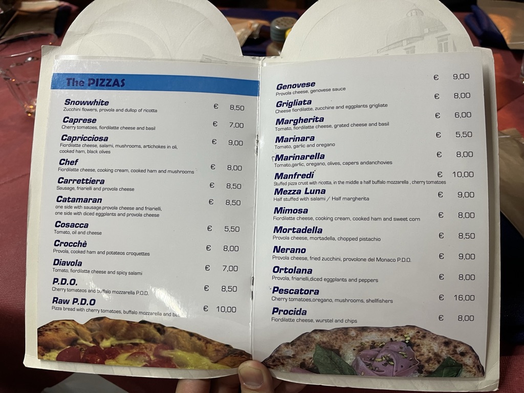 우리나라에 있는 나폴리 피자집에서도 많이 먹었는데, 나폴리에서 직접 먹으니 맛이 좋았습니다.