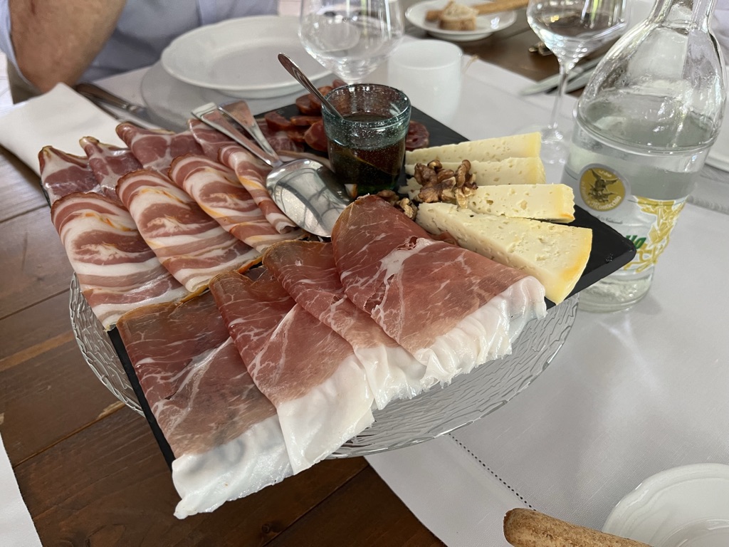 코파, 쿨라텔로, 프로슈토, 살라미, 치즈입니다.