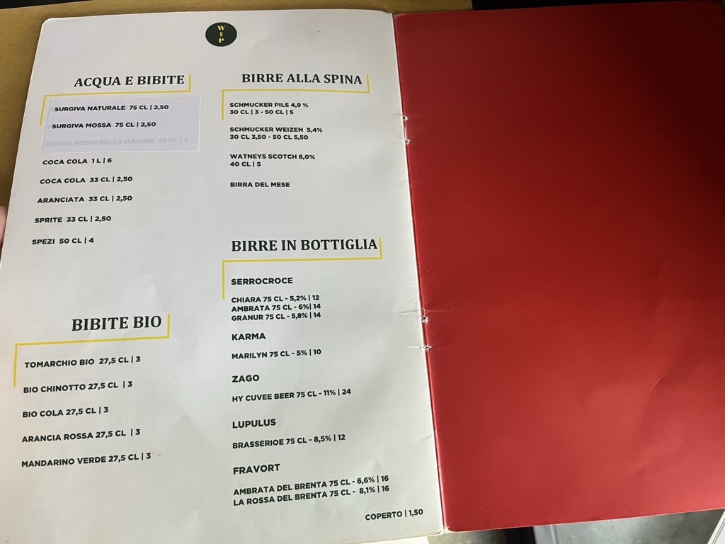 저희는 스파클링 워터, 스텔라 생맥주 2잔, 그리고 피자 두 판 주문했습니다.(나폴리에선 당연히 1인 1 피자입니다.)