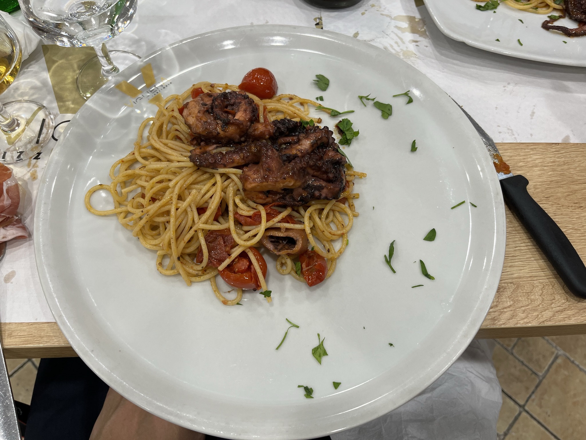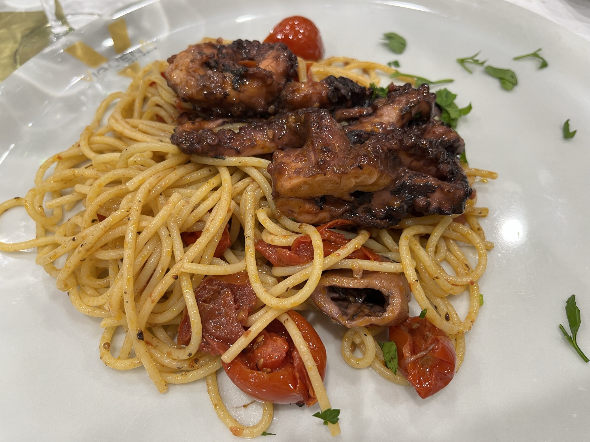 세 번째 요리, 해산물 오일 파스타입니다.