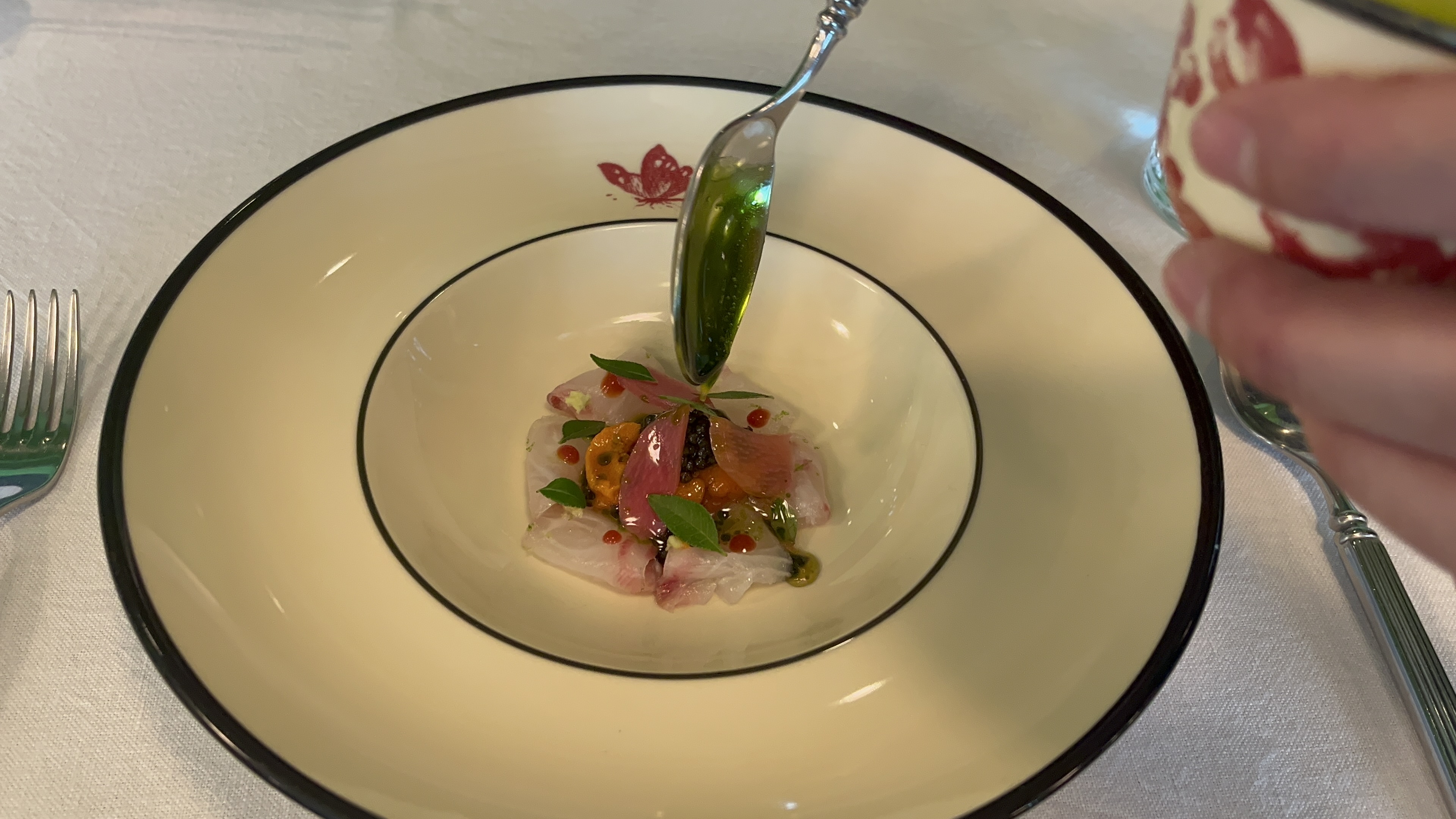 첫 번째 페어링 샴페인인 '로랑 페리에 그랑시에클'과 잘 어울렸습니다.