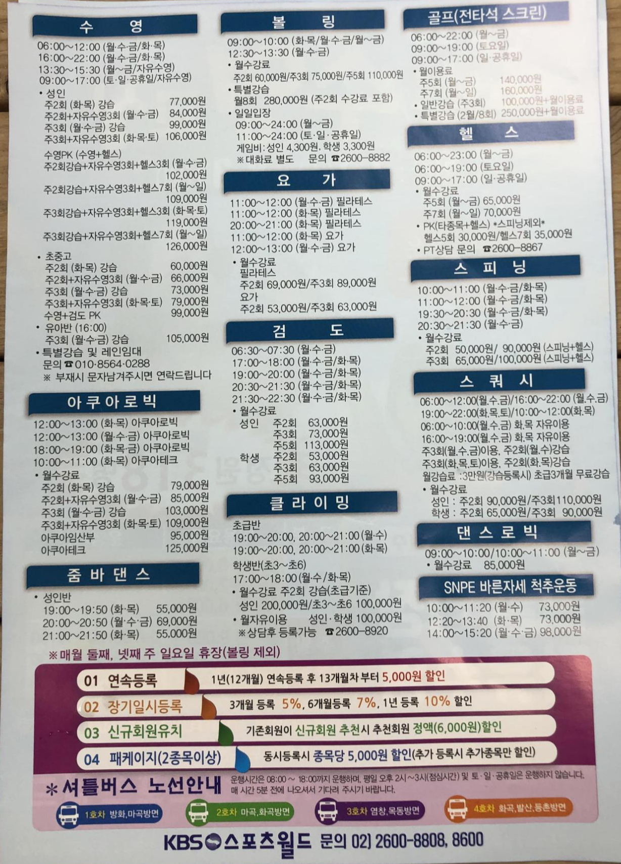 그리고 이건 KBS 스포츠월드에서 진행하는 여러 프로그램인데요.