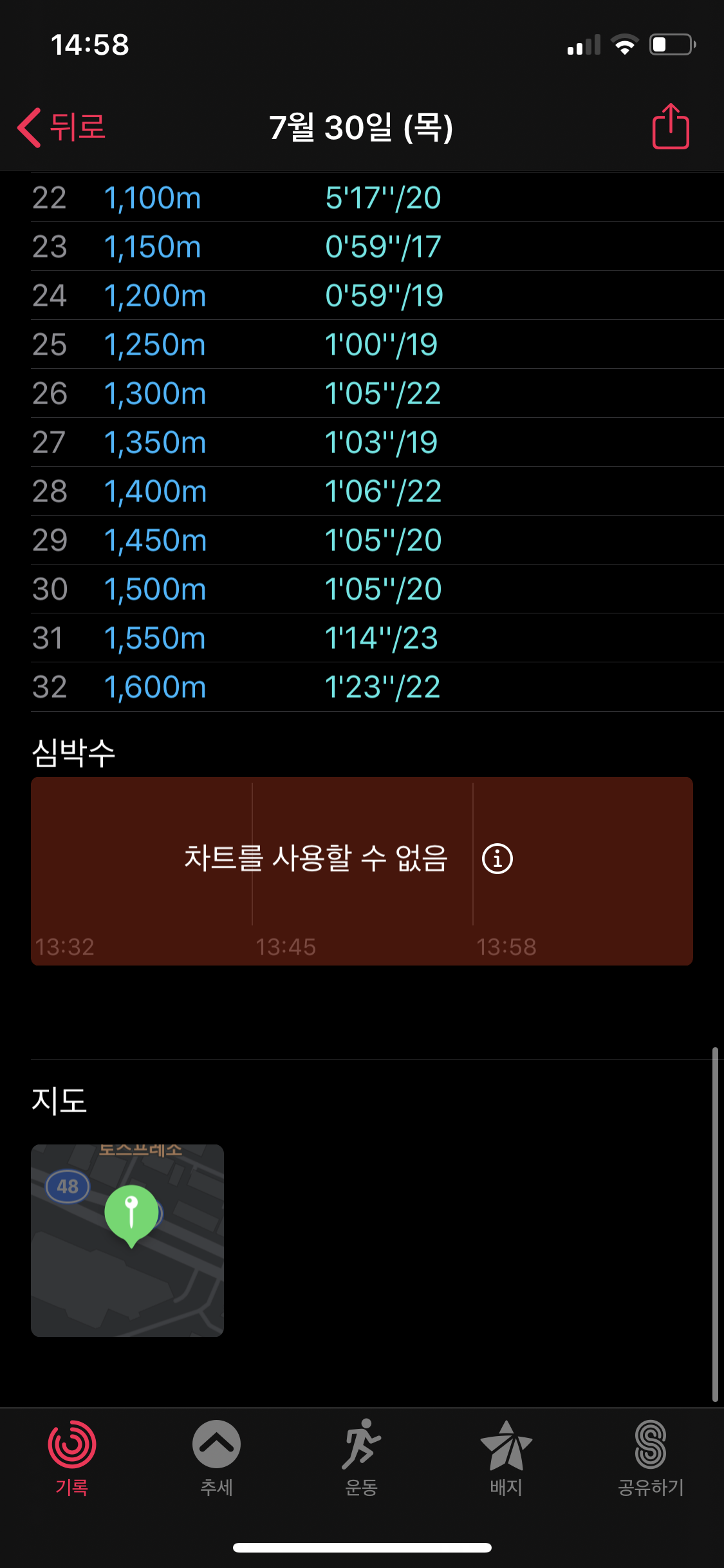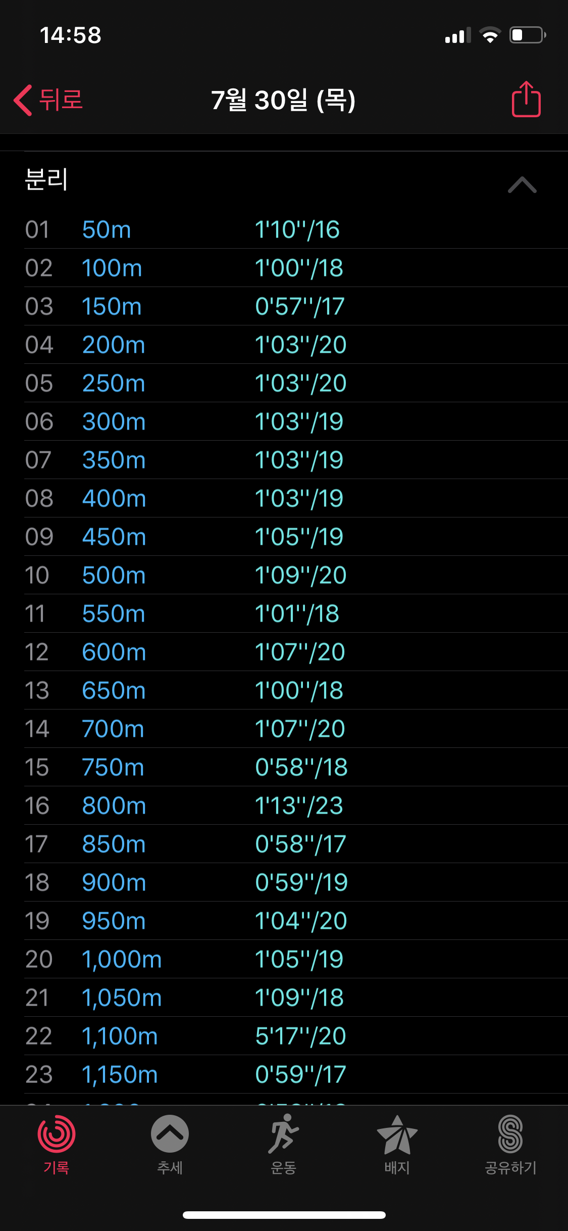 그리고 쉬엄쉬엄 하다가 마무리로 500M를 쉬지 않고 돌았습니다.