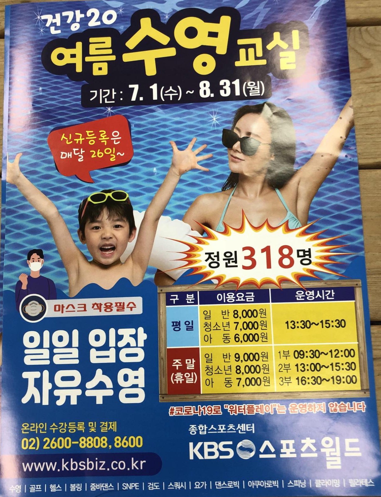 원래 KBS 스포츠월드에선 7~8월 동안 워터플레이를 진행해서 평일 자유수영이 없는데요.