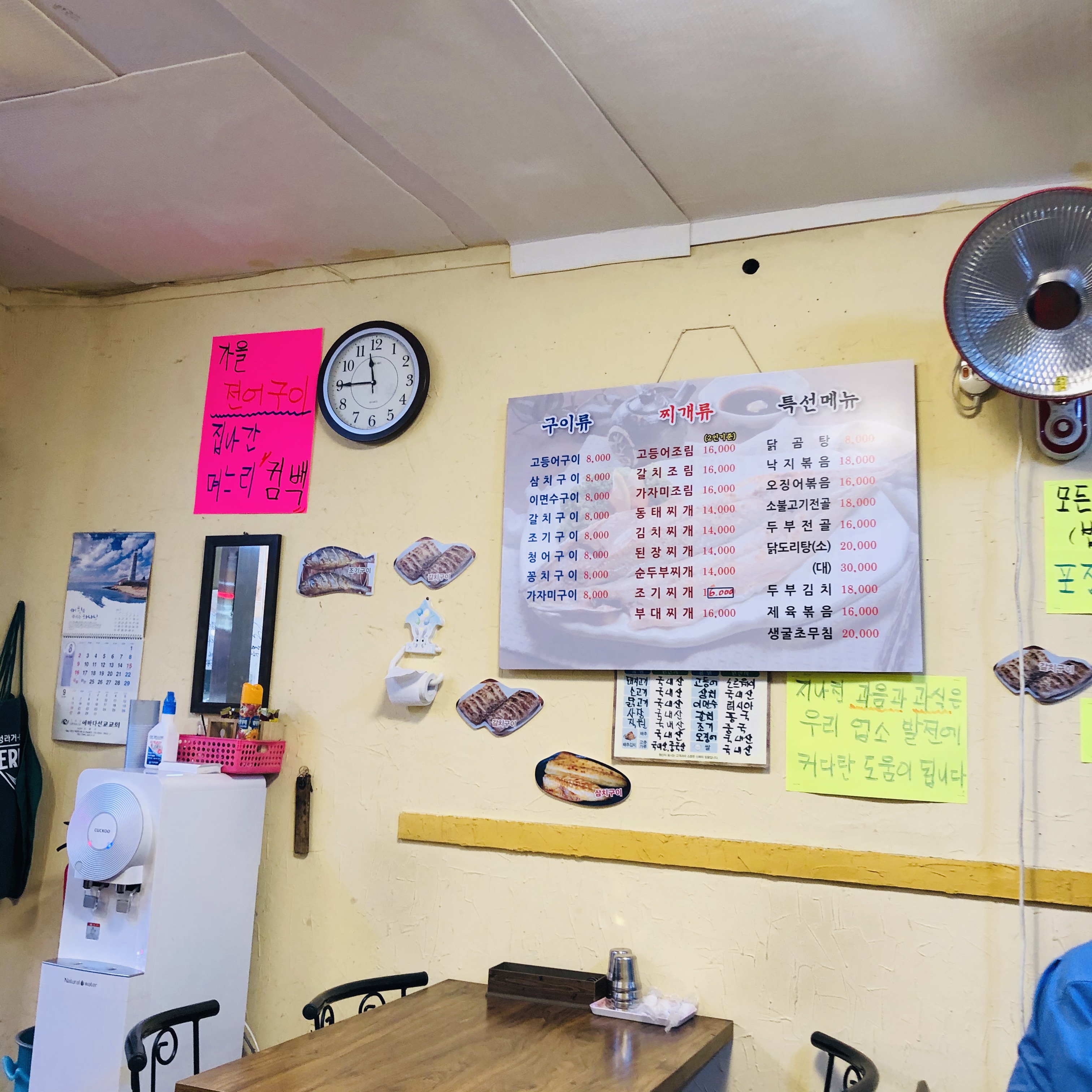 여기 메뉴판이구요. 생선 구이들도 있지만 찌개류도 보이네요.