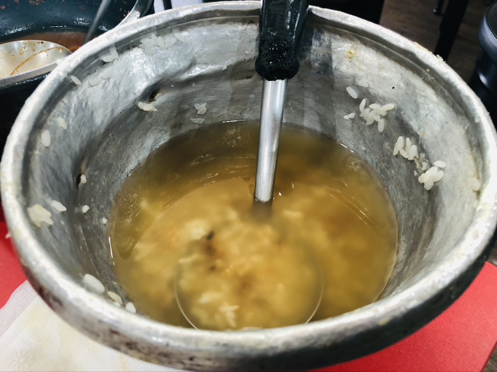 거의 다 먹어 갈 때쯤 냄비밥의 누룽지를 준비해주십니다.