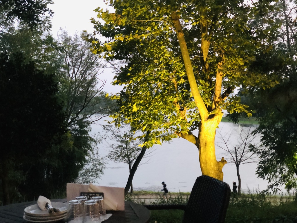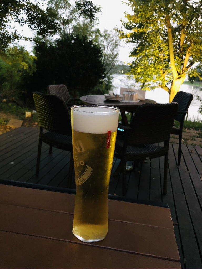 이 곳의 장점은 시원한 가을에 테라스에 앉아 호수를 바라보며 맛있는 음식을 먹을 수 있다는 것입니다.