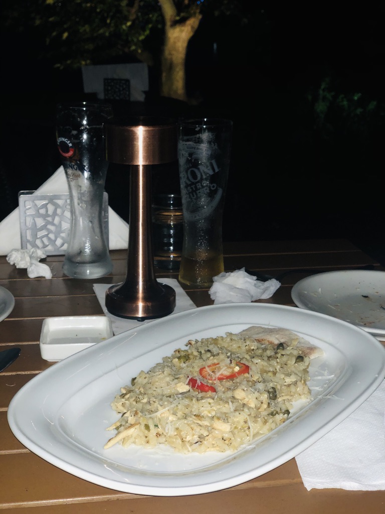 저희는 버섯 샐러드, 볼로네제 파스타, 봉골레 파스타, 뽈로 알루이스 리조또, 루꼴라 피자 그리고 페로니 생맥주를 주문했습니다.