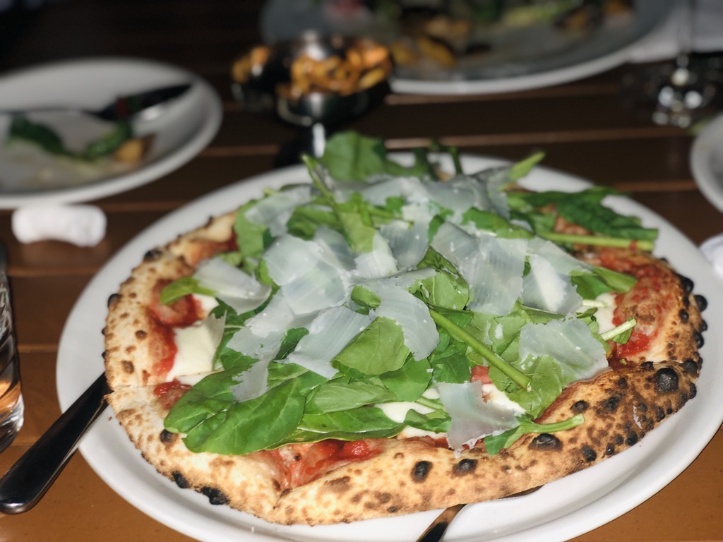 정통 나폴리 화덕피자입니다. 나폴리 산 밀가루, 토마토소스, 버팔로 모짜렐라, 루꼴라, 레지아노 치즈.