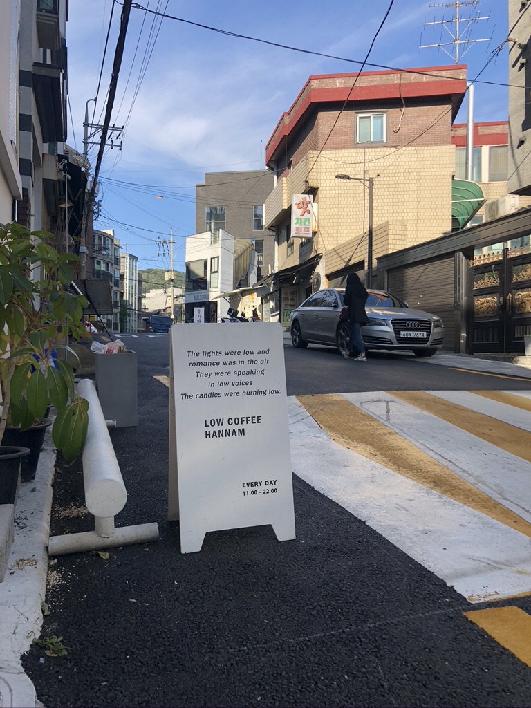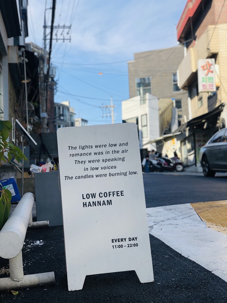 그렇게 한남동 나인원 뒤쪽 거리를 걷다 보니 밖에 앉을 수 있는 카페를 찾았습니다.