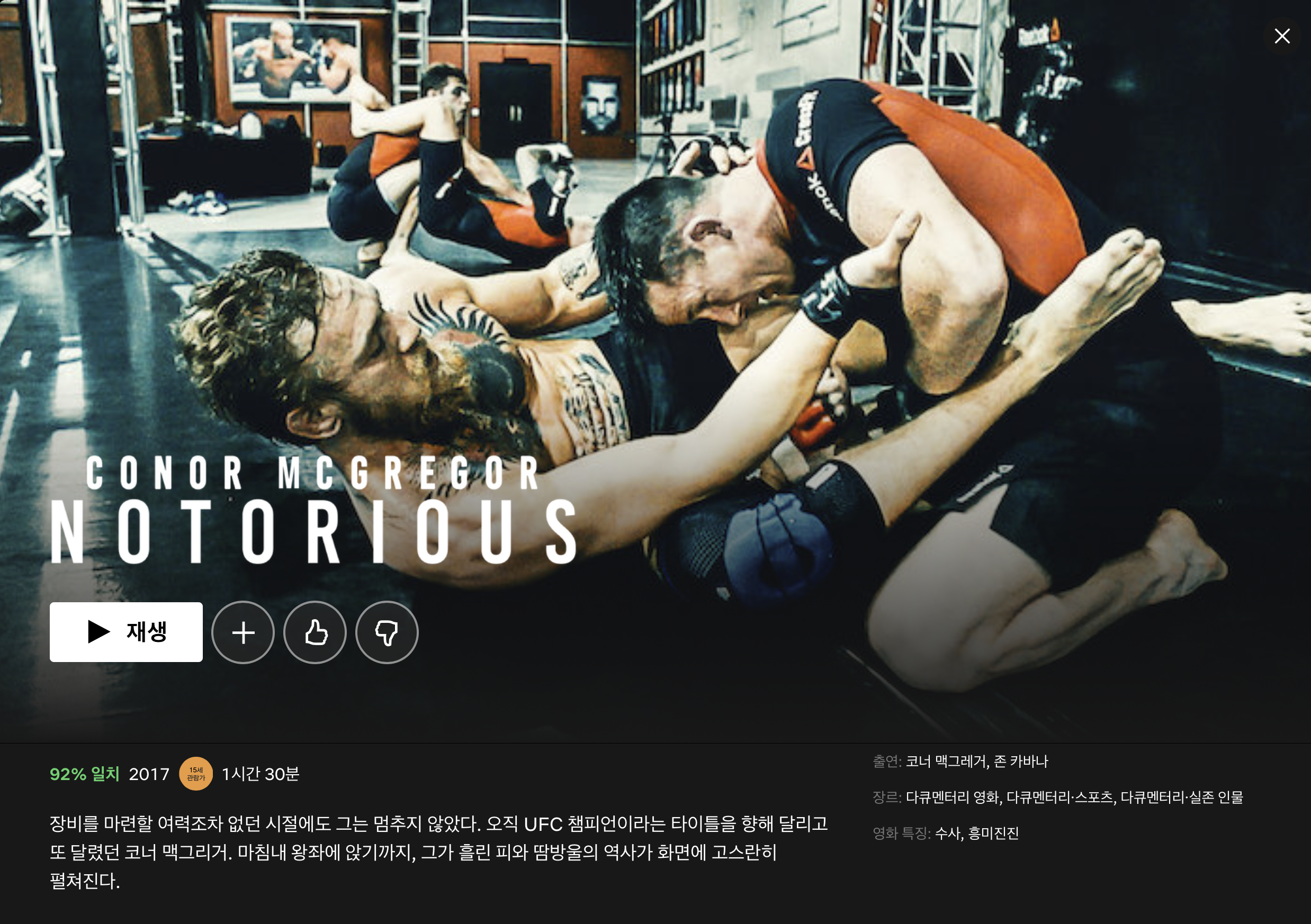 처음 보는 컨텐츠가 있었는데 바로 'CONOR MCGREGOR NOTORIOUS'였다.