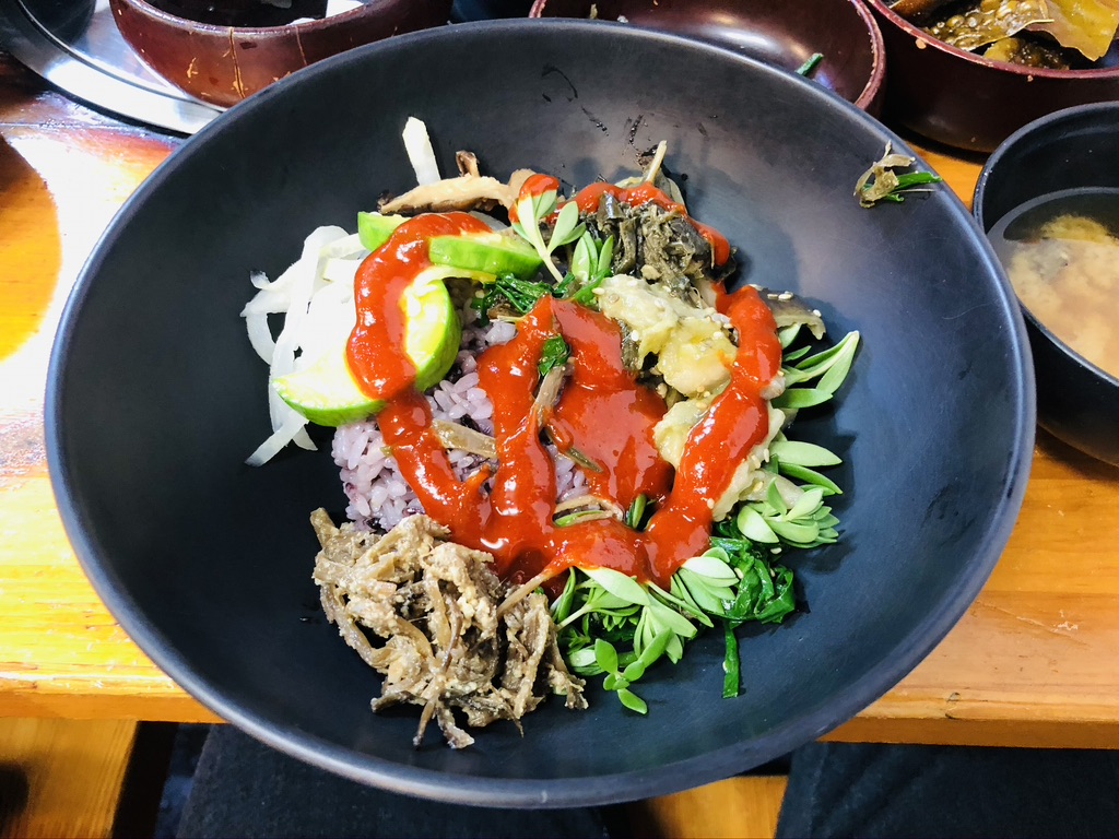 비빔밥의 특성상 밥을 많이 넣지 않아도 나물들이 많기 때문에 배부르게 먹을 수 있죠?!