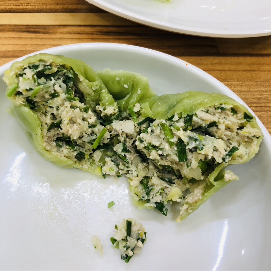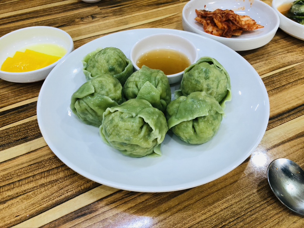 초록색 만두피에 안에 고기가 너무 많이 들어가 있었고요.