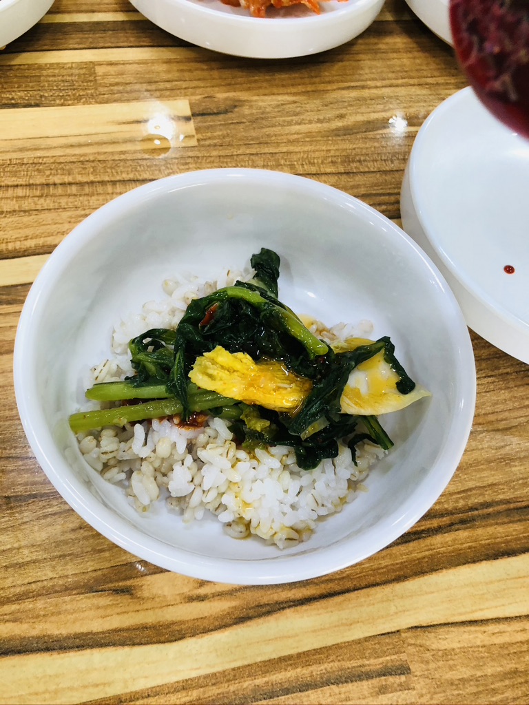 열무김치, 고추장, 참기름을 넣고 비벼먹었습니다.