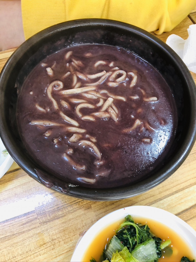 이건 팥칼국수인데 햇팥으로 만들어서 달았습니다.