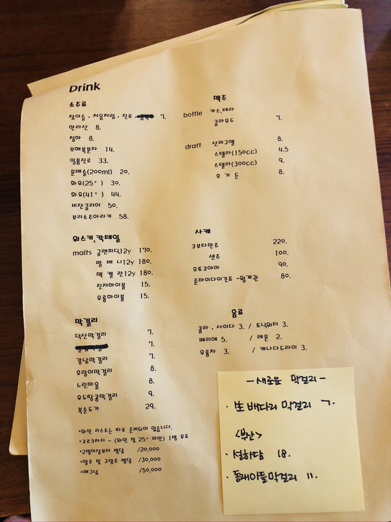 메뉴판입니다.