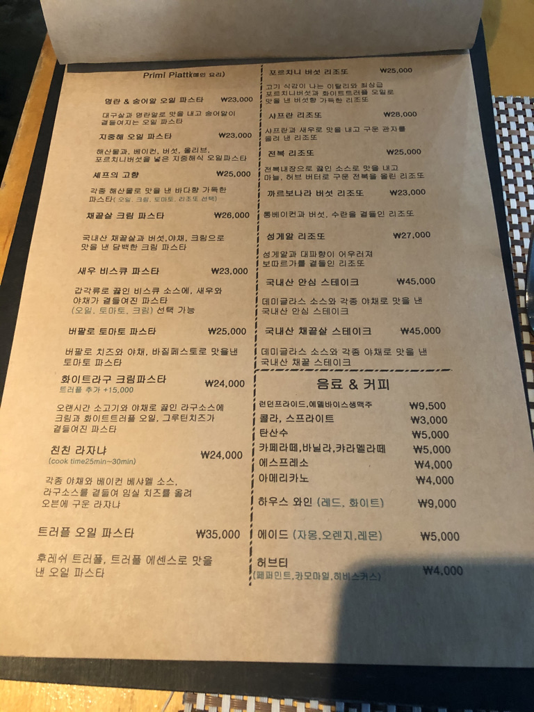 저희는 지중해 오일 파스타와 채끝살 크림 파스타를 주문했습니다.