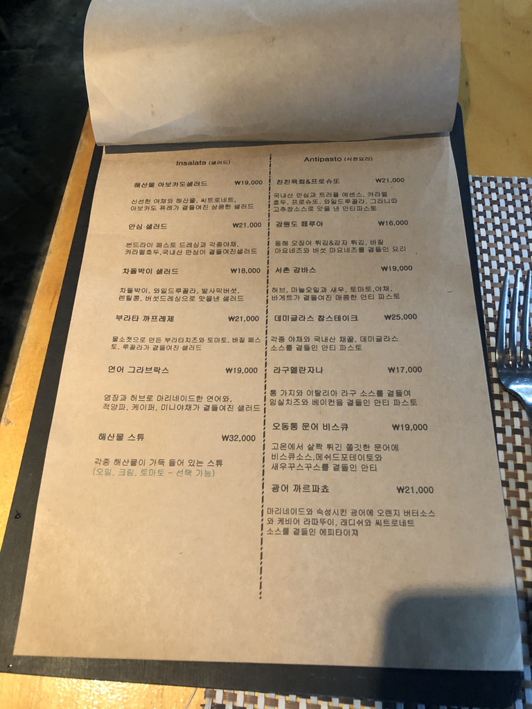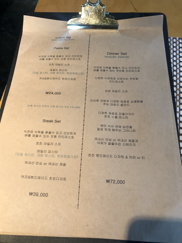 저녁 세트는 1세트로 안티파스토와, 파스타 등 추가된 몇 가지 메뉴가 보이네요.