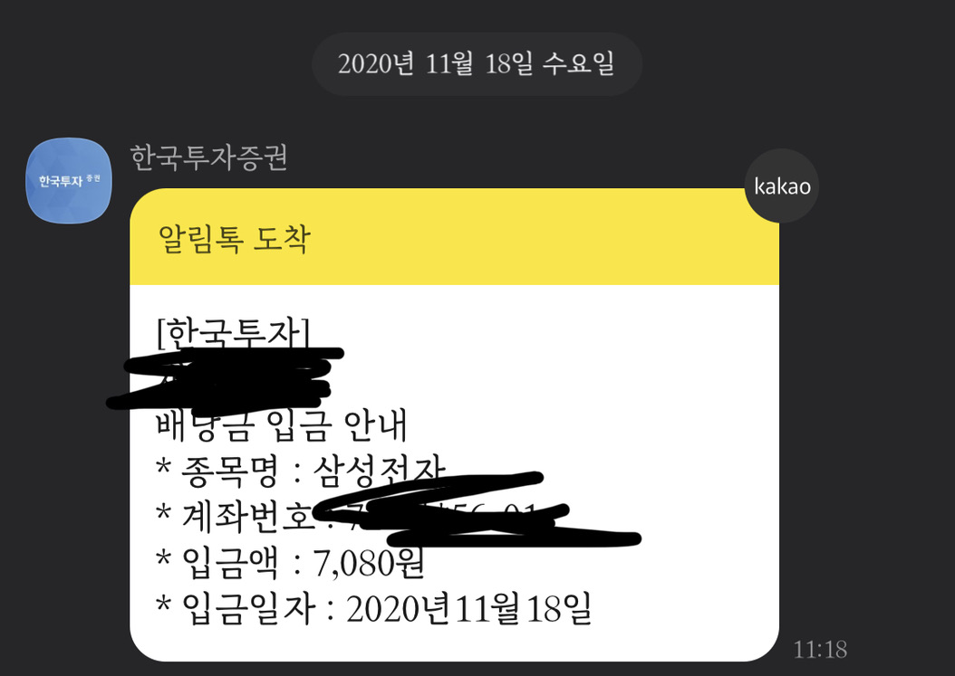 11월에 제가 받은 배당금은 7,080원이었습니다.