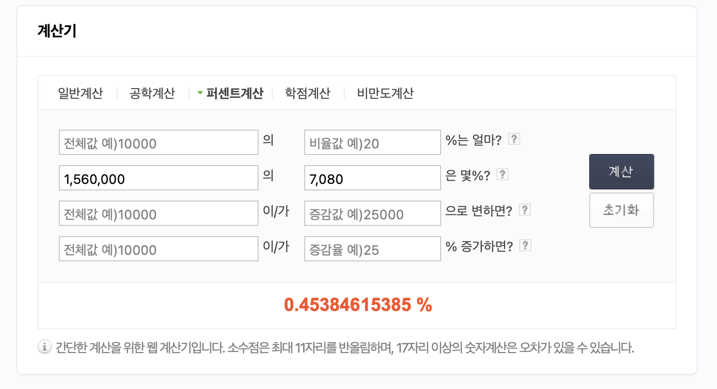 보유 금액의 0.45% 입금되었습니다.