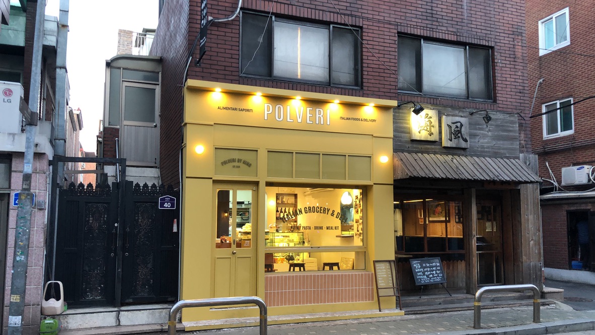 합정동과 망원동 그 어딘가에 있는 노란색이 선명한 폴베리입니다.