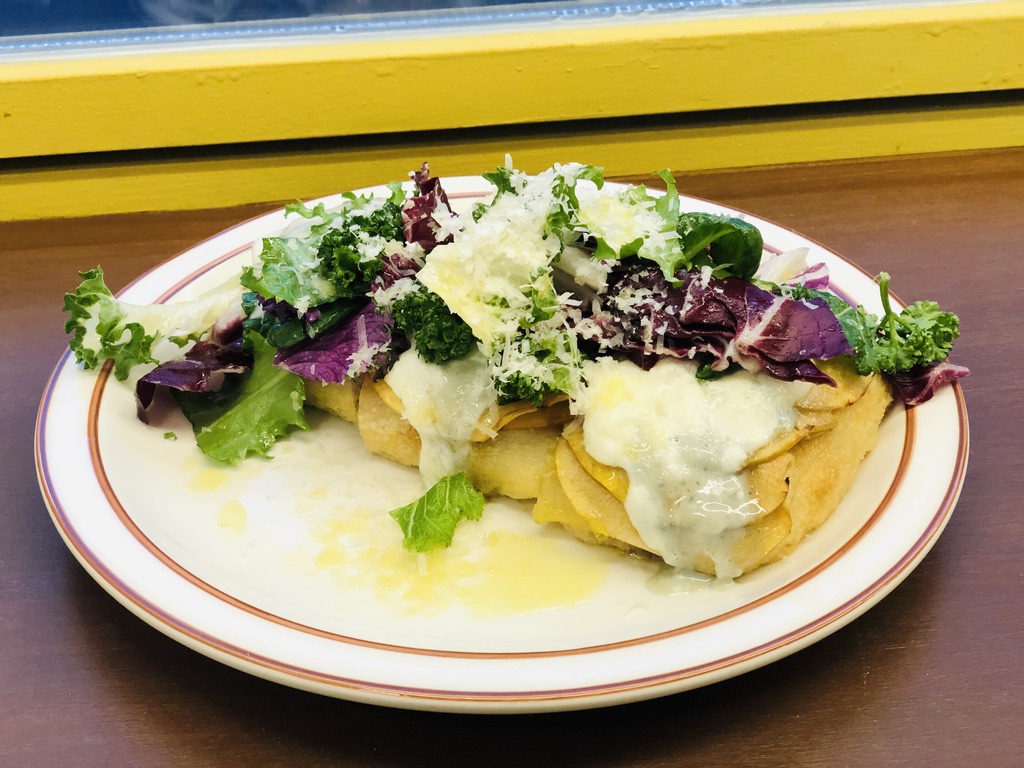 저는 사장님께 메뉴 추천을 받아 사과 고르곤졸라 피자를 주문했습니다.