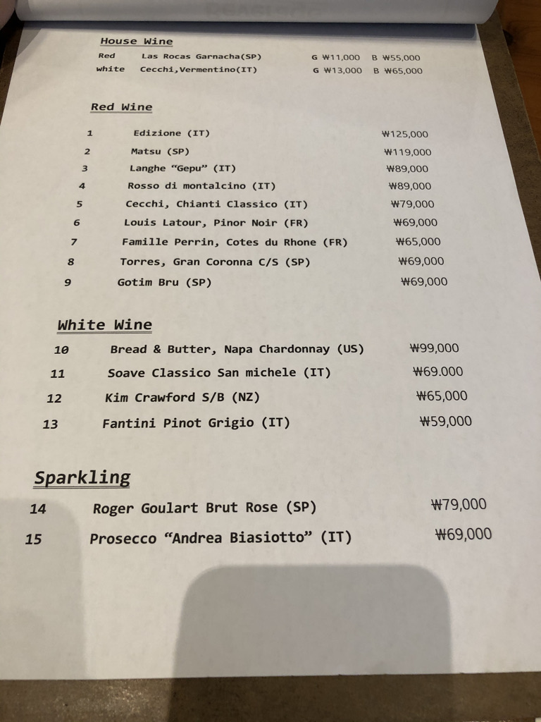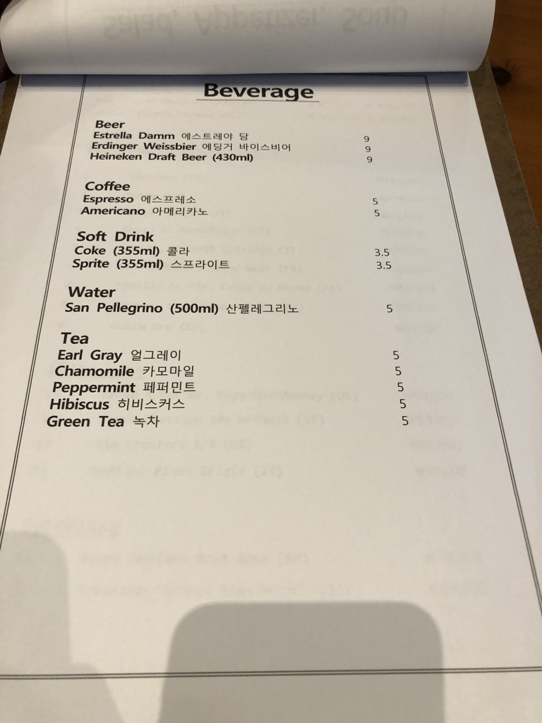 코스 요리, 단품, 음료, 와인 이렇게 있습니다.