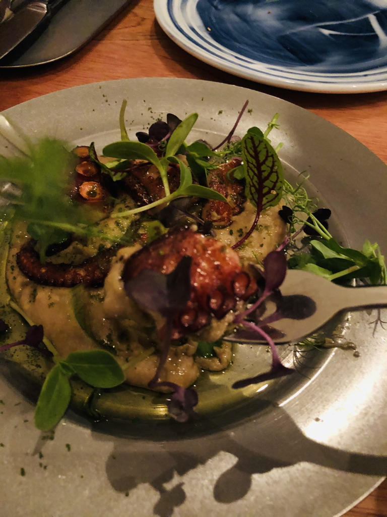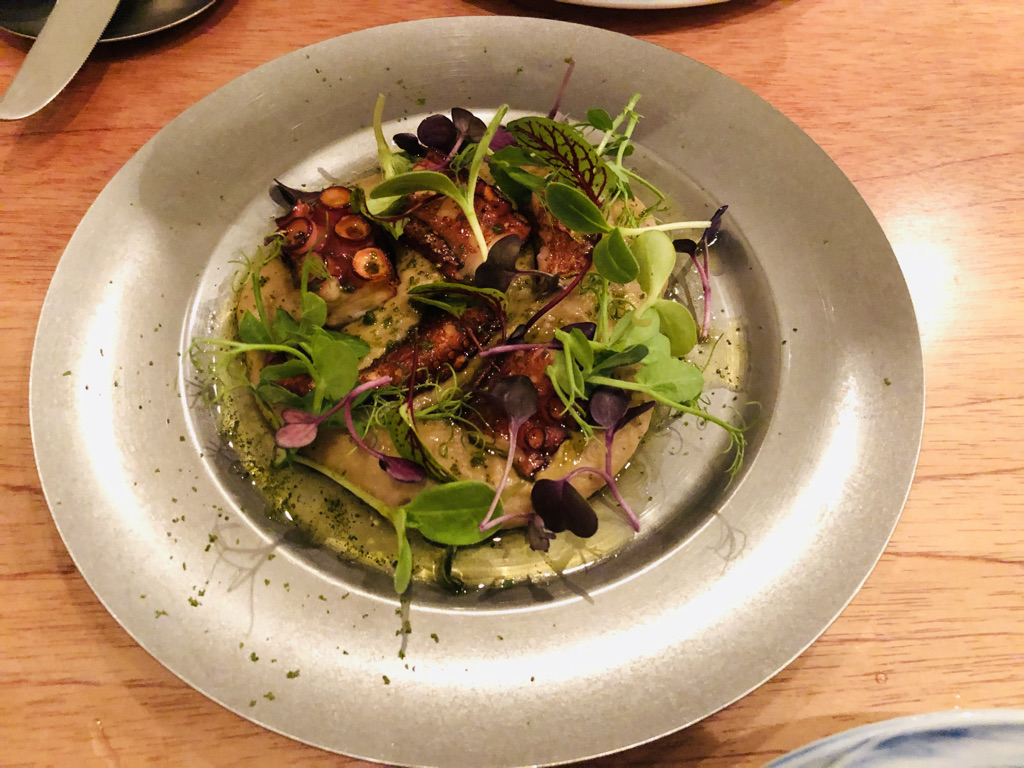엑스트라 버진 올리브 오일, 포치니 버섯 크림, 그릴 문어, 쉐프님이 직접 재배하신 특수야채