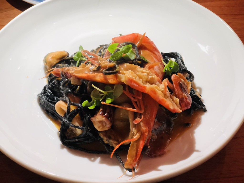 먹물면은 부드럽고 맛있었고요. 파스타에 있는 해산물과 약간의 소스는 너무 시원했습니다.