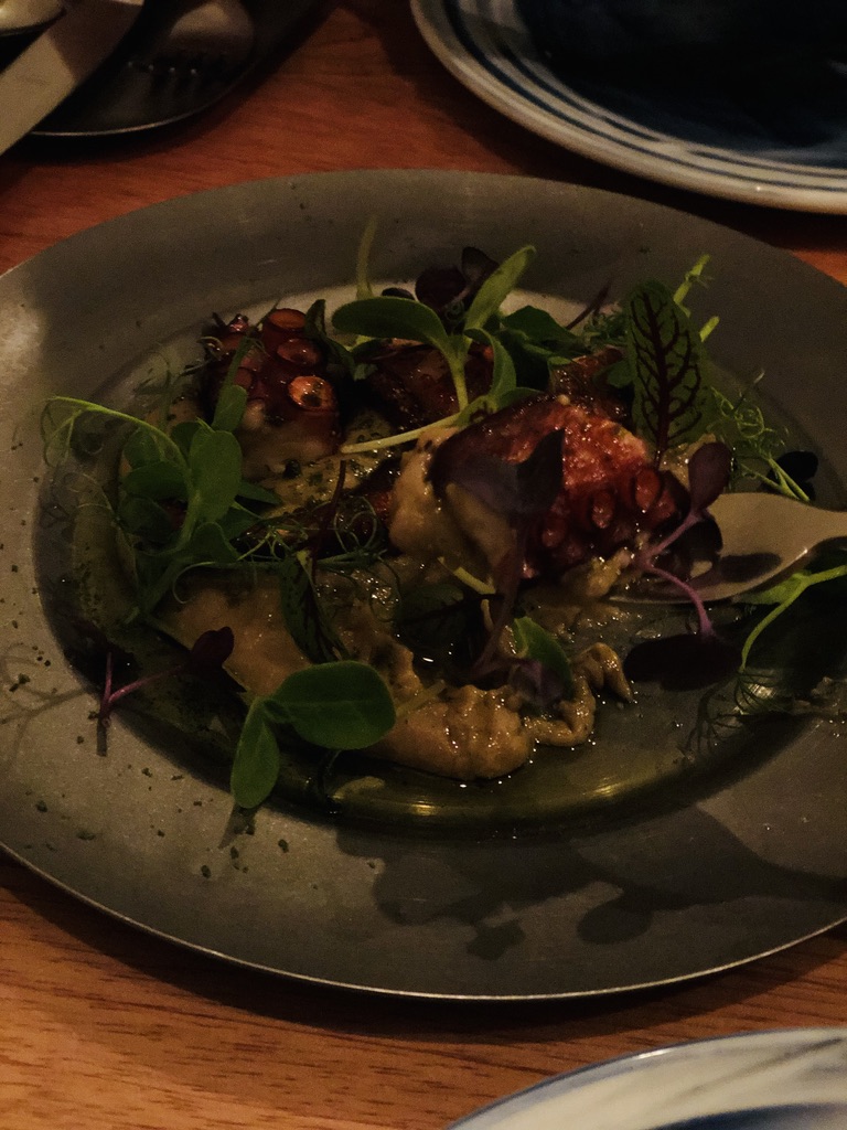 엑스트라 버진, 포치니 크림, 문어, 특수야채를 한 번에 집어 입 안에 넣으면 정말 행복했습니다.