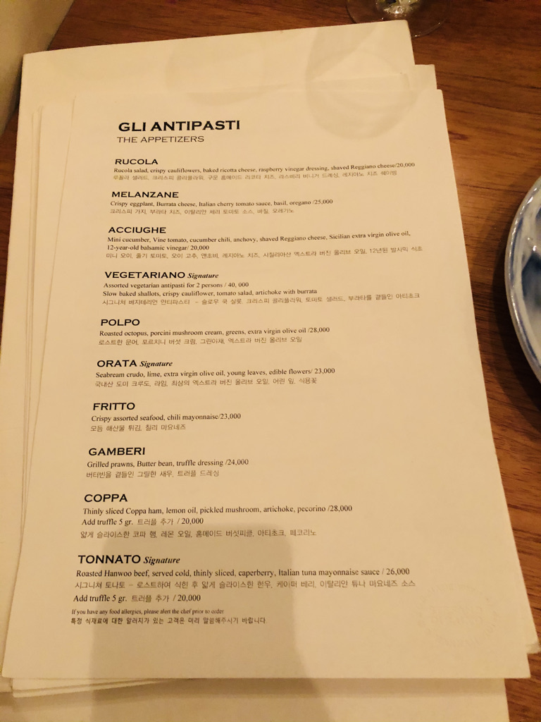 저는 사실 메뉴판을 보고 주문하기보단 스테파노 쉐프님께서 강조해주시는 메뉴를 먹었습니다.