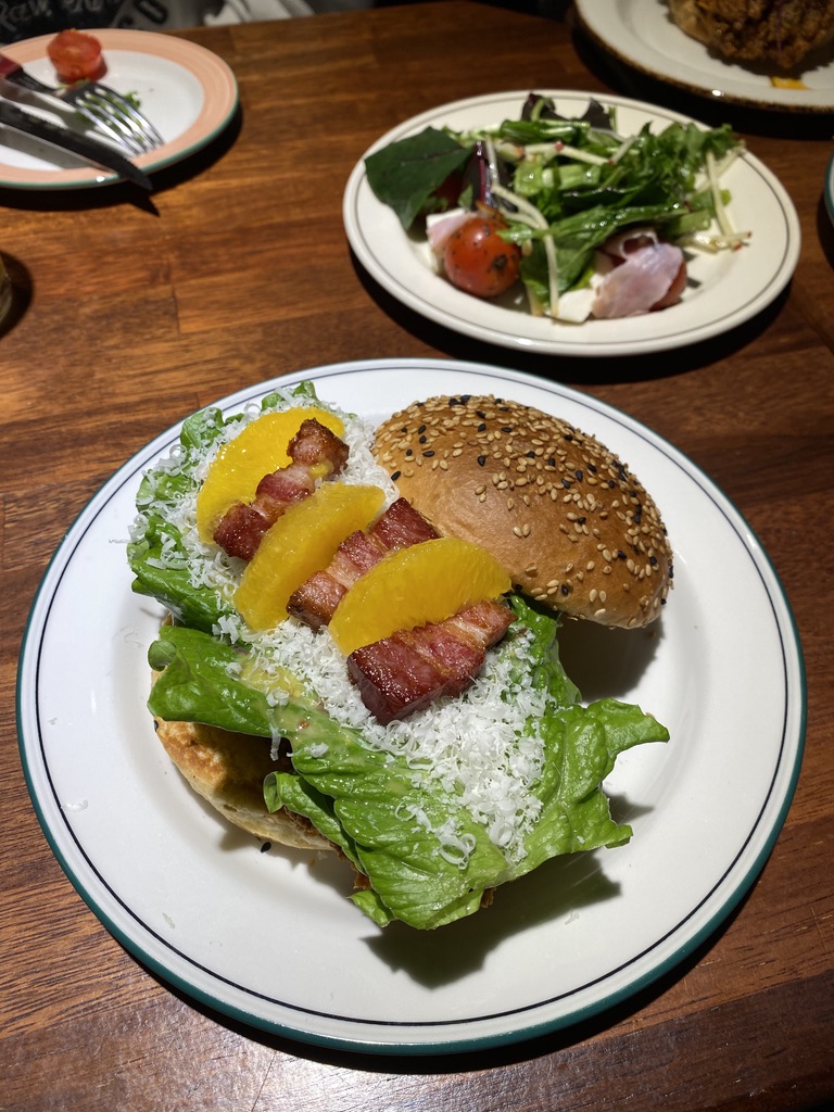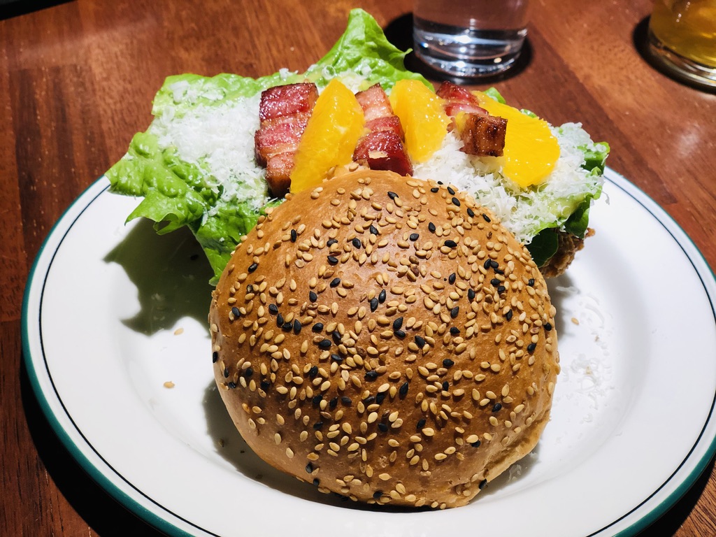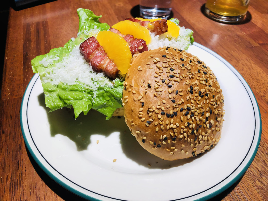 자칫 퍽퍽할 수 있는 버거를 오렌지와 통 로메인이 잘 잡아주었고요.
