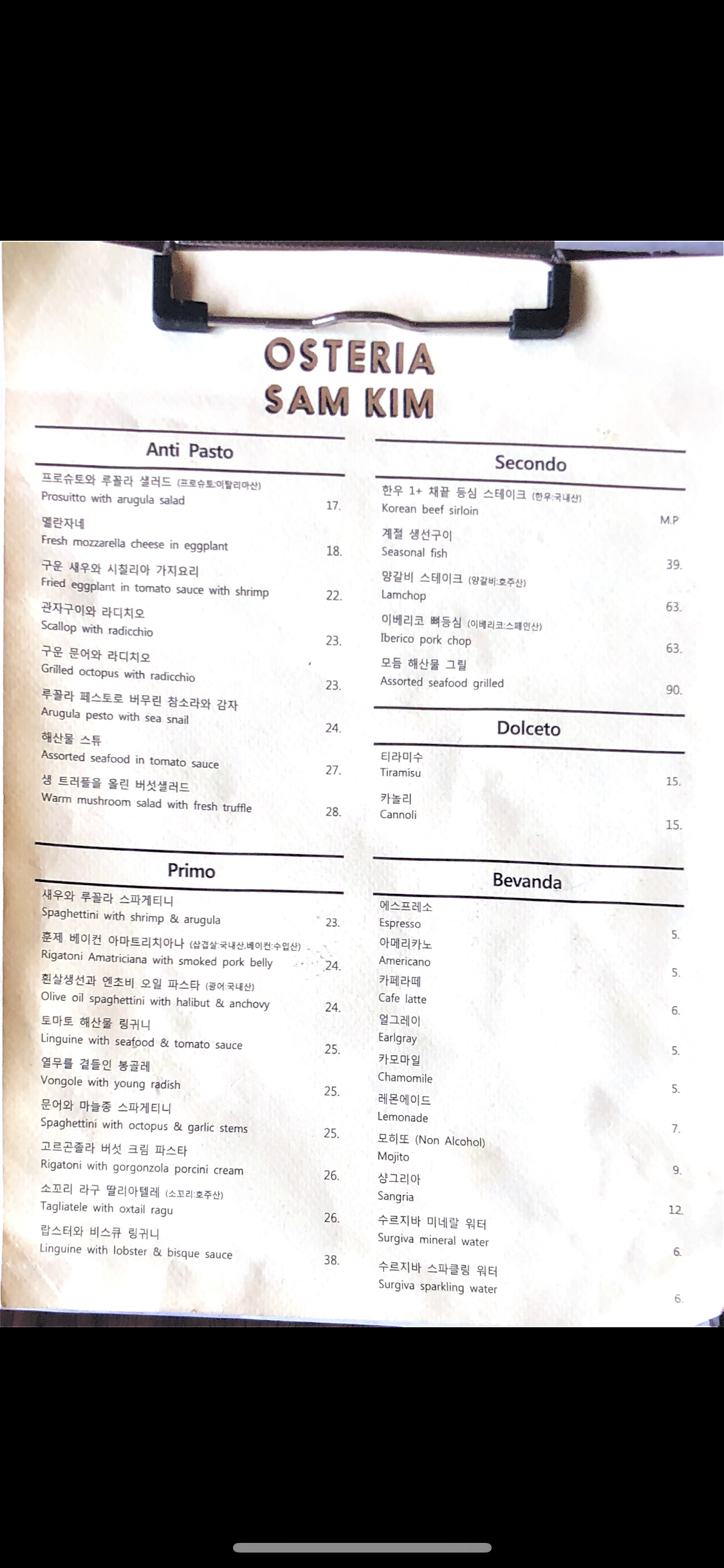 이탈리아 음식을 좋아하시는 분이라면 꼭 오스테리아 샘킴 가보시는 걸 추천드리겠습니다.