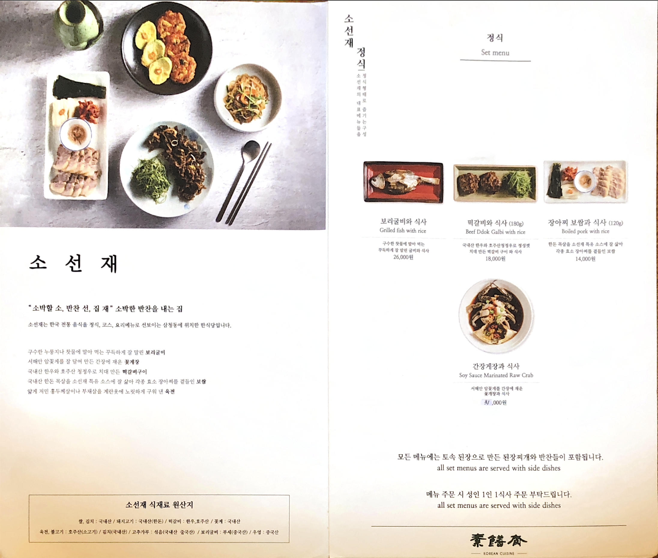 맨 오른쪽엔 보쌈과 장아찌, 소선재 막걸리