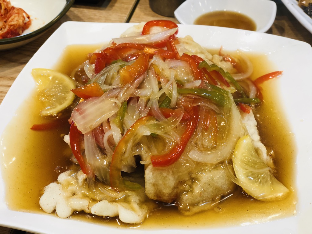 탕수육은 사진에 보이는 것처럼 레몬이 좀 많습니다.